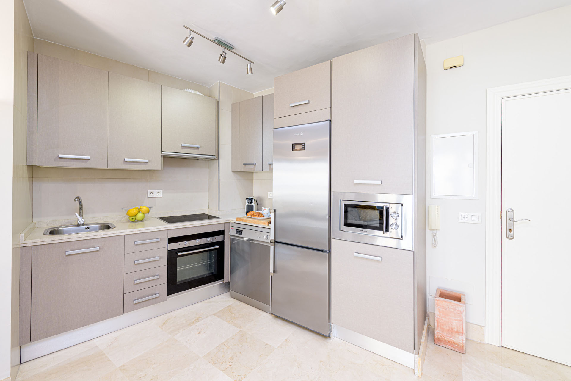 Det moderne amerikanske køkken er en madentusiastens drøm, udstyret med førsteklasses apparater, herunder et induktionskomfur, køleskab, fryseskab, ovn, mikroovn, opvaskemaskine og kaffemaskine. Du vil finde alt køkkengrej, service og små apparater som en brødrister og elkedel til at tilberede lækre måltider.
